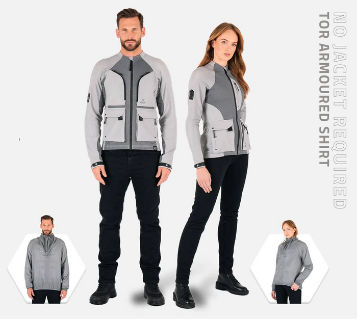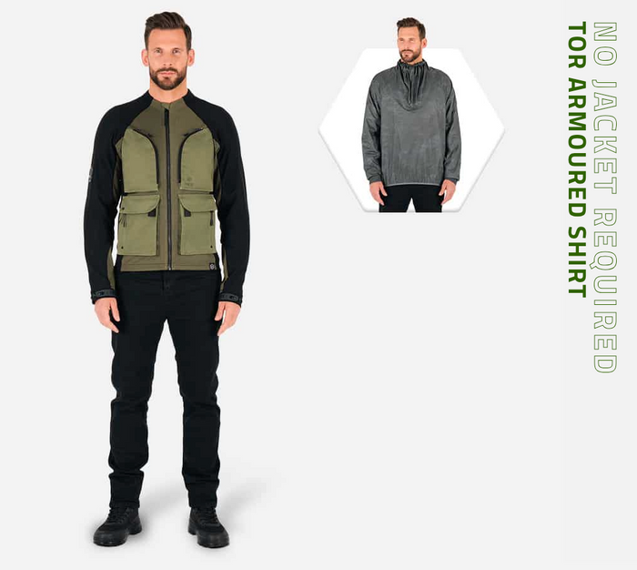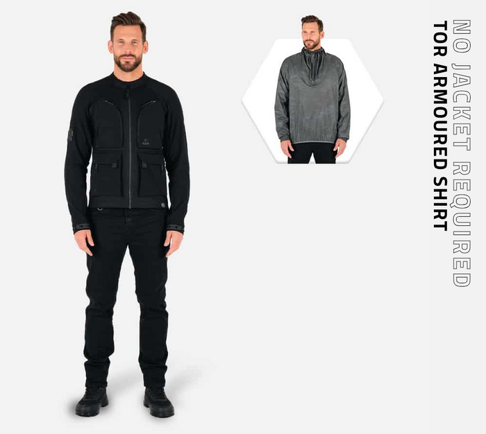 For those unexpected rainstorms each Tor armoured shirt comes with it's own lightweight, packable, waterproof over jacket. The Tor perfectly compliments another new 2024 product, the Urbane Pro MK2 Trousers.
