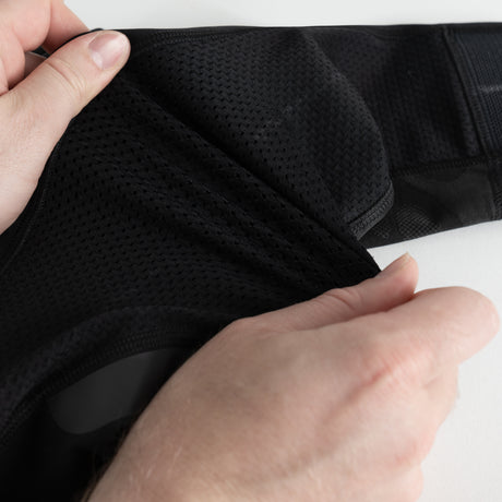 Invisible armour pockets with external access for easy removal of low profile Knox CE protectors.