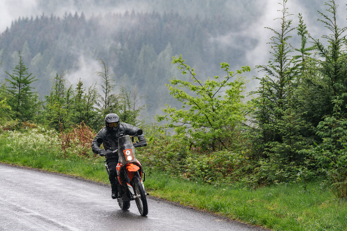 It’s light as a feather and thin, semi translucent so that it won’t weigh you down – a truly technical advancement. At first glance, this jacket may seem simple in its design, but upon closer inspection the all-over tonal reflective print is revealed. The mountain print is inspired by the rocky mountains that surround Knox in the English Lake District, keeping the rider not only dry but safe and visible at night.