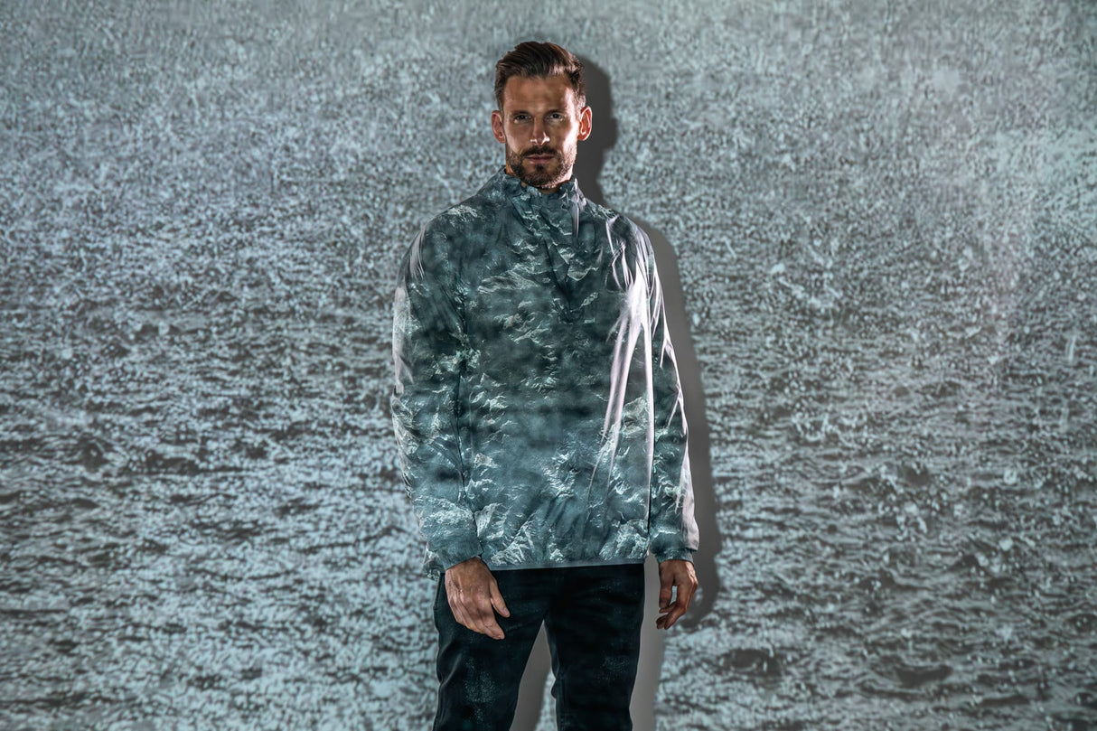 The easy to use, pull over design has a drawstring neck closure - simply put the jacket on and pull the stretch neck cord to the desired length. It’s fast and easy and no zips or bulky trims to weigh the user down. The silhouette provides plenty of room to move whilst the elastic hem and technical bonded stretch cuffs pull it in at the bottom - keeping rainwater out and the wearer dry.
