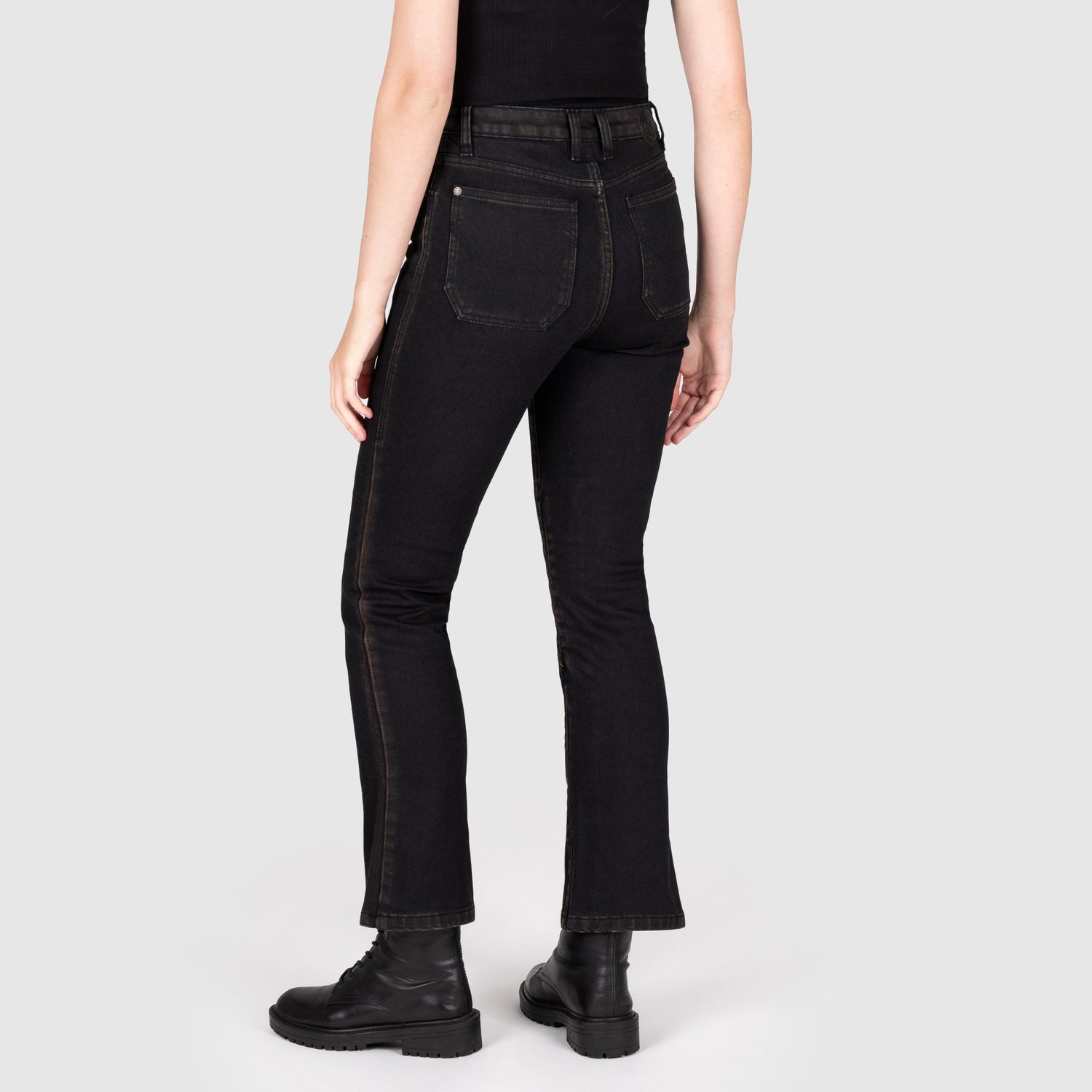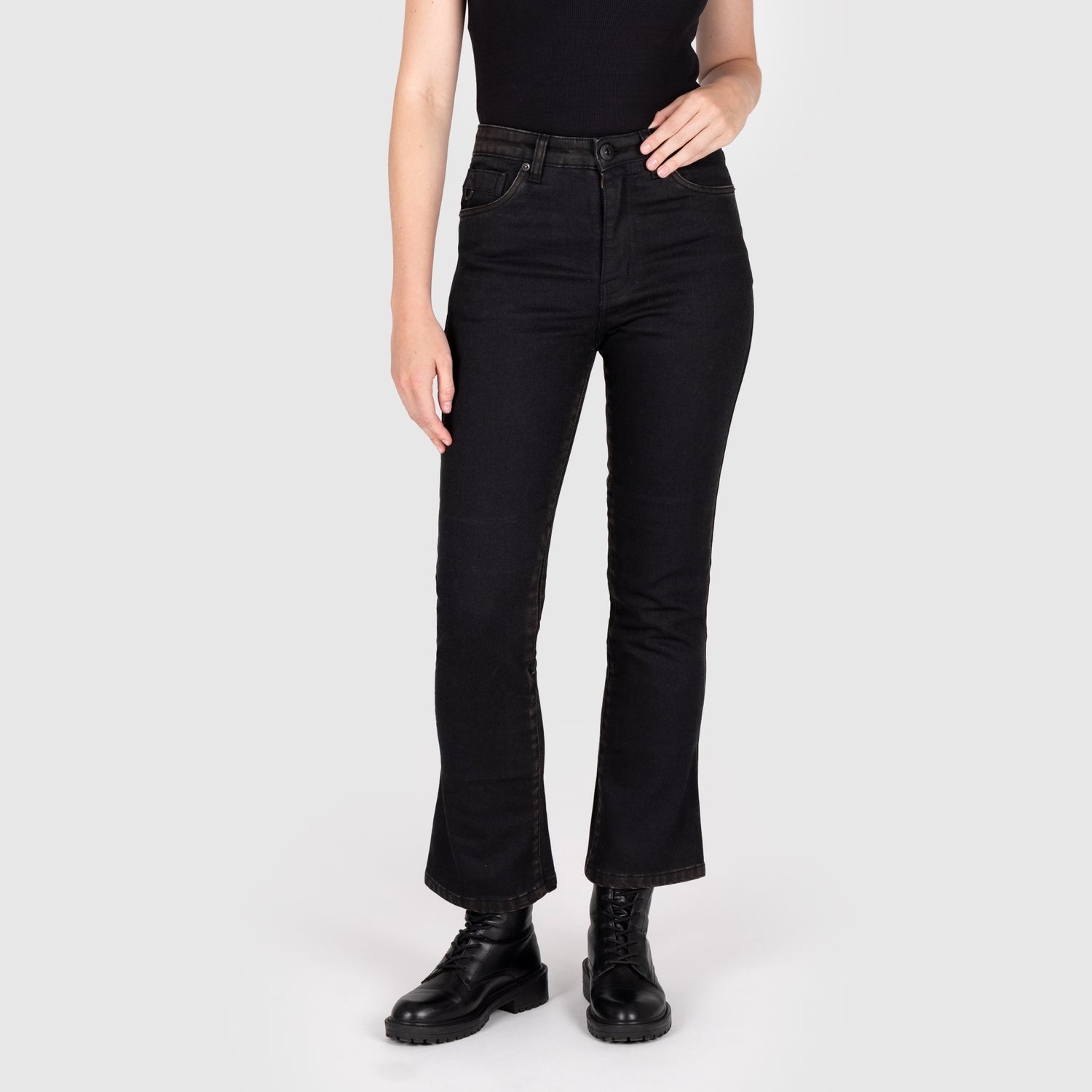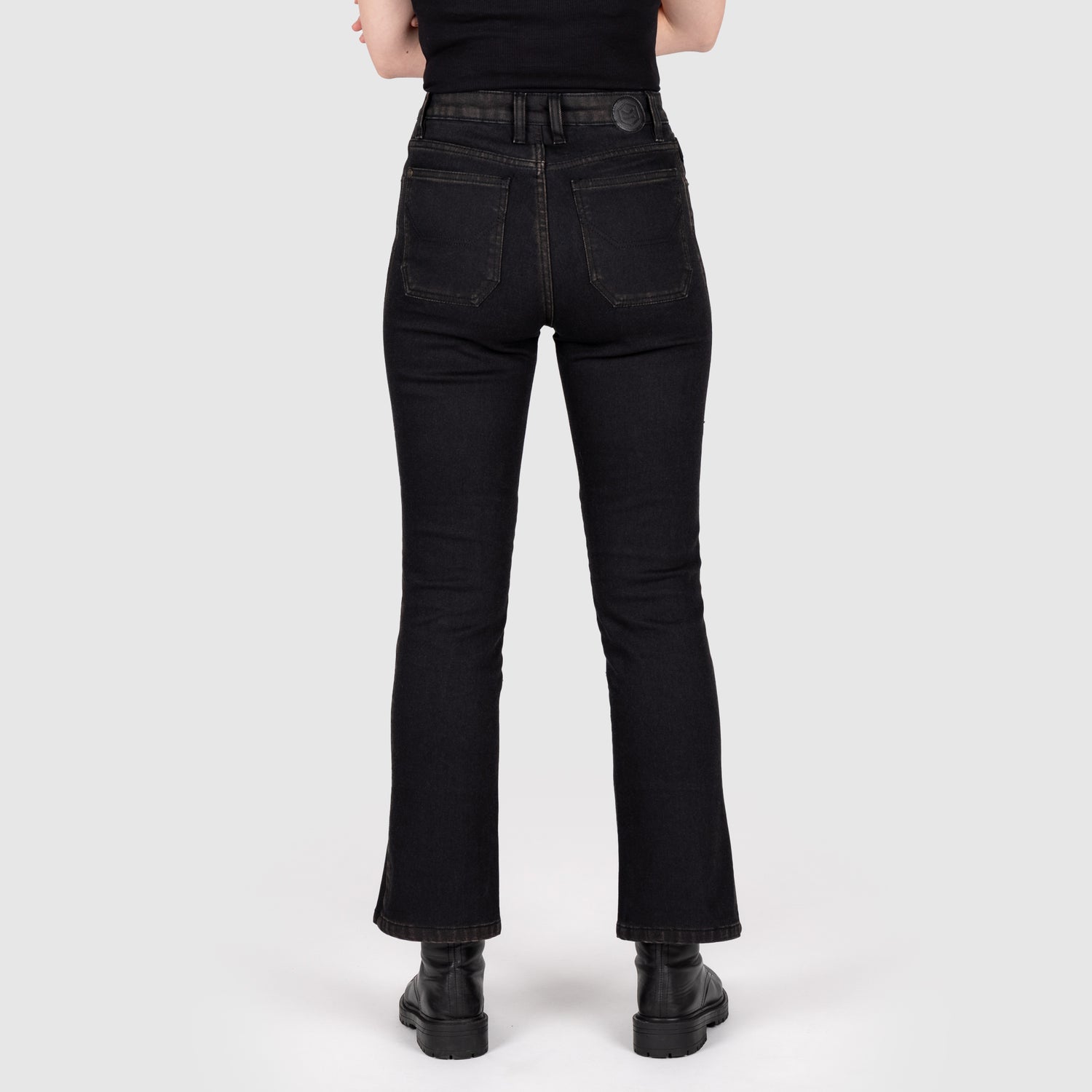 The Cartmel Jeans in aged black rust are Knox’s most flattering, stylish and comfortable jeans yet. They are a single-layer Class AA two way stretch jeans, in a high-waisted kick flare - developed by women for rider’s who are uninspired by the lack of different variations in women’s motorcycle jeans. Made with new advanced abrasion-resistant denim, the Cartmel jeans provide superior protection whilst not compromising on comfort and most importantly, a flattering fit.