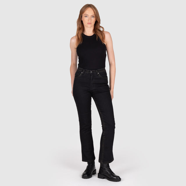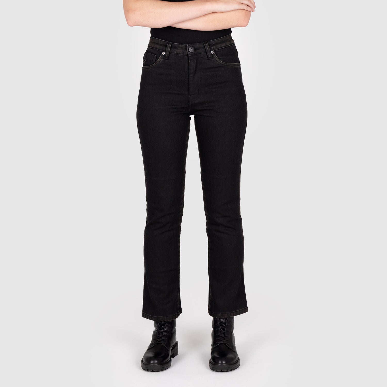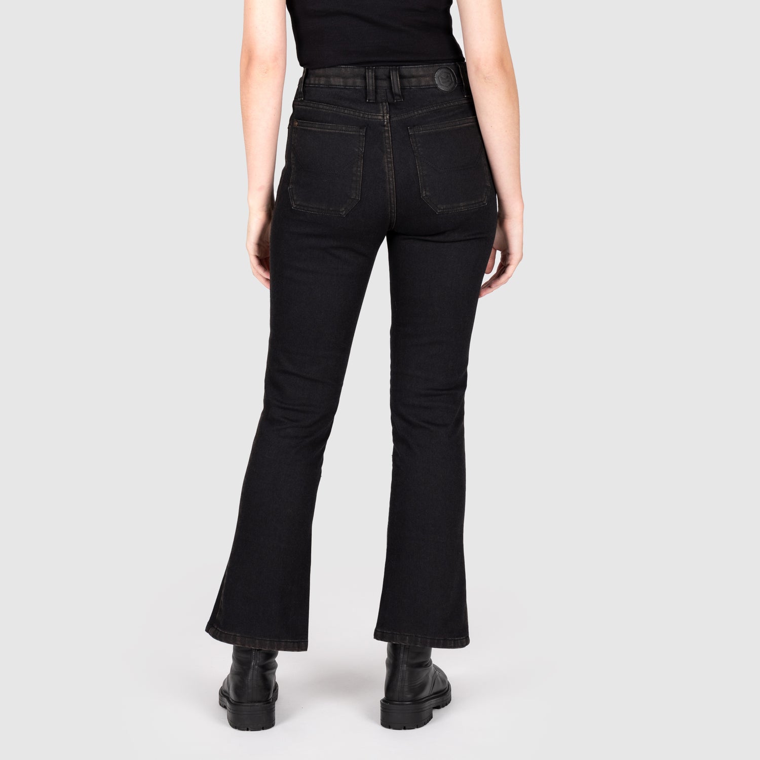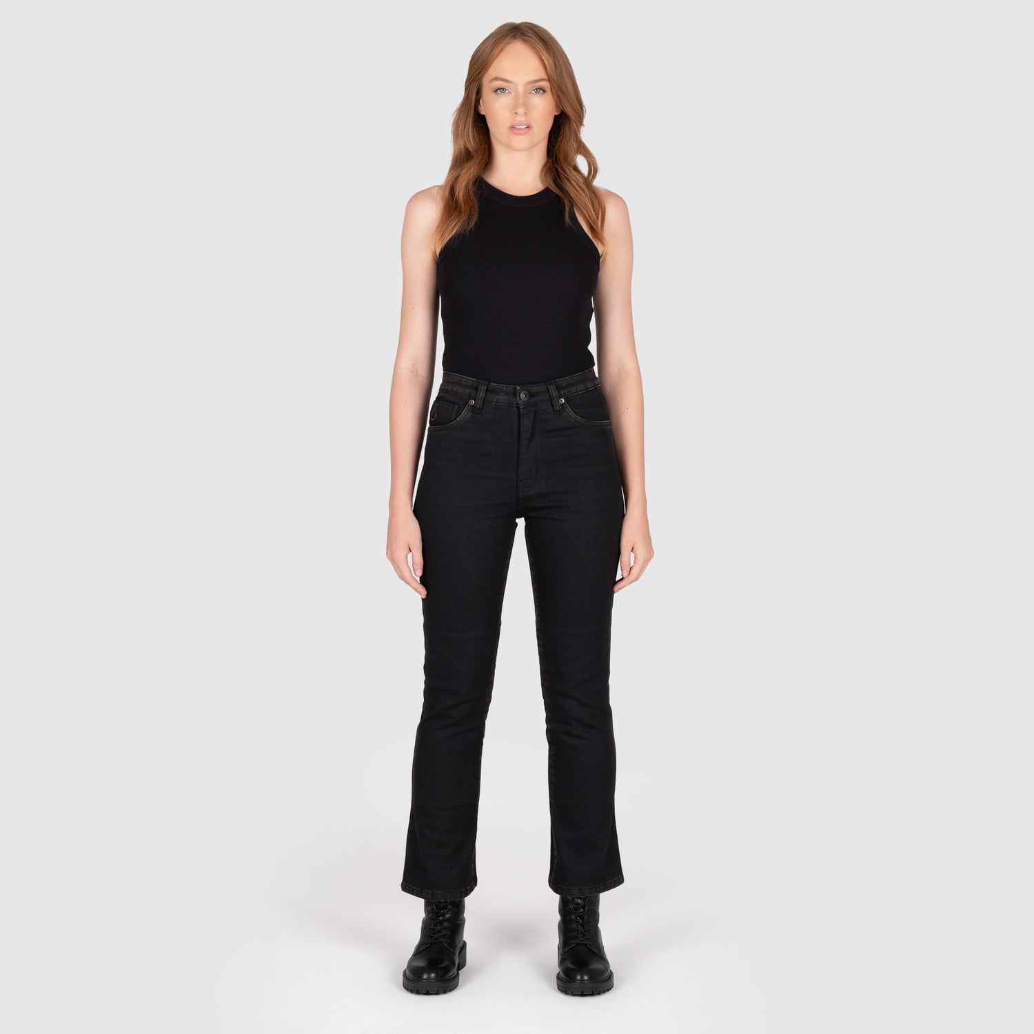The Cartmel Jeans in aged black rust are Knox’s most flattering, stylish and comfortable jeans yet. They are a single-layer Class AA two way stretch jeans, in a high-waisted kick flare - developed by women for rider’s who are uninspired by the lack of different variations in women’s motorcycle jeans. Made with new advanced abrasion-resistant denim, the Cartmel jeans provide superior protection whilst not compromising on comfort and most importantly, a flattering fit.