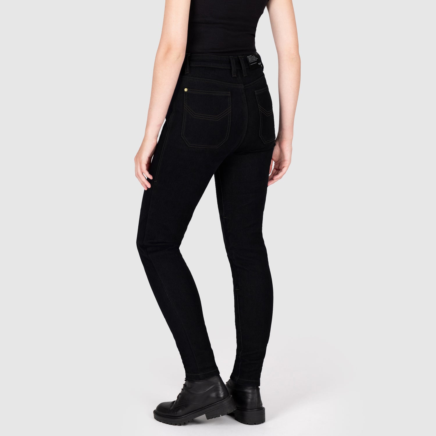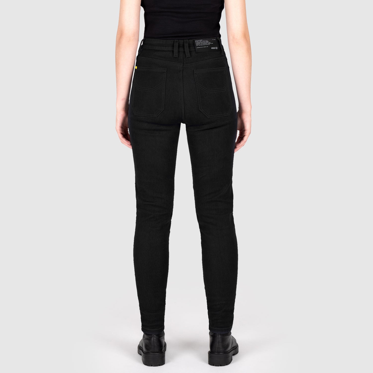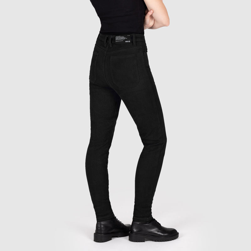 They are a single-layer Class AAA stretch jeans in a high-waisted slim fit and are for those riders looking for the strongest protection available. Made in pioneering new denim developed for Knox with Ultra-High Molecular Weight Polyethylene (UHMWPE) fibre. UHMWPE fibre is one of the world's strongest and lightest fibres - it is 40% stronger than aramid and fifteen times stronger than steel.
